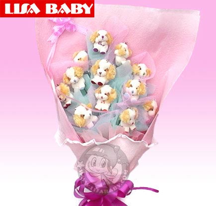 各式各样的玩具越来越多,也越来越新颖精致,看着这些打包成花束的小可爱,我们的心仿佛也被幸福溶化了一样,让我们一起把快乐打包。