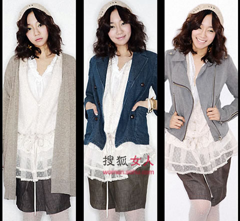 搭配Tips:如你所想,蕾丝与雪纺组合的裙子适合各种装扮,但在乍暖还寒的春天里,各式轻薄挡风的外套与薄纱裙的组合成为最实用的组合,完美又不失女人味。