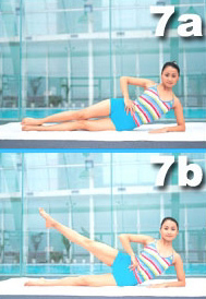7a.侧卧。双腿伸直,左臂支撑上身。右手叉腰。