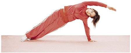 呼气,转向右边,轻轻以两拍扭转腰部,转腰时看向后方的手臂。当扭转的时候,保持身体直立。转向正中央,恢复到动作1的姿势。换边,重复上述动作,来回做3-5次。结束的姿势都是动作1。