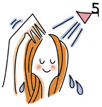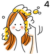 用手指轻按头皮,洗发水的泡沫便会将粘在头发上的污垢带走,万万不可用指甲大力括,这样只会括伤头皮。 |