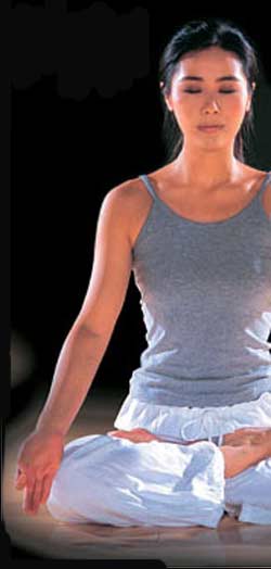 按瑜伽冥想姿势坐好,闭上眼睛,注意力集中于自己的呼吸。