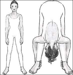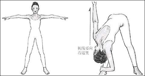 配合的动作练习:[直立向前俯身功]能帮助减去腰部和腿部的赘肉。