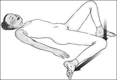 两膝弯曲,并将脊椎平稳地贴于地面,然后将双手手掌置于身体两侧的地面上。一边的保持直立,并让另一边的膝盖擦着直立的膝盖落到地面上。反方向也用同样的方法进行。左右摆动膝盖,并保持膝盖贴地。这样可以刺激到肠道。这时如果像左右晃动一样活动膝盖,效果就会降低。促进肠道运动,从而对便秘有着显著的疗效。