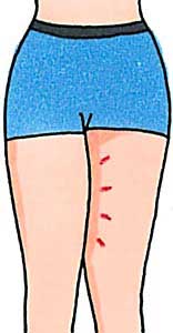 伸展运动是大腿健美的最有效的方法之一。两臂下垂,一腿膝下蹲,背部保持挺直,另一腿向后伸,直至与地面平行;或者在同一位置,另一条腿向侧面伸直,直至与身体成90度角,试着在每一条腿上做3 组(每组10次)这种运动。