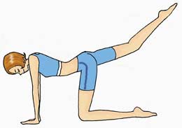 这种锻炼也可以在身体站立时进行,一腿站立并保持身体挺直,另一条腿向侧面伸和向后伸,尽量使大腿平直且与地面平行。伸腿运动也可侧身进行,在床上或地板上身体平直地侧卧,一腿紧靠地板,另一腿向上抬起,直至该腿与身体成45度角,然后将上腿以45度角支撑在一个桌子或椅子上,再抬起靠地板的腿使其与上腿并拢。