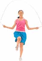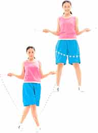 双脚并拢,向后挥动绳子跳过后再向前挥动绳子并跳过。此动作开始时觉得较难,所以要在地上画一条线,以该线为界限向前后跳动。