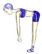 2、背脊可稍稍弯曲,上半身尽量往前倾。前倾时手臂依然要自然下垂。待3-5秒后,回到上一个动作。重复动作10-20次,但要注意膝盖不可弯曲。
