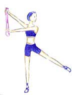 2、双手往右高举时,左脚跟着抬高。重复动作24回,换边再做。