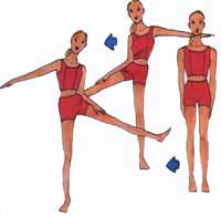 以立正的姿势站着。右脚伸直向右抬起,同时左手伸直向左抬起。此时,注意身体的平衡。诀窍在于腿部要使劲。轻轻回到原来的姿势。另外一侧同样做一遍、这个动作大约为2秒。刚开始做的时候,以1O秒钟做5次为目标,习惯后多加快速度。
