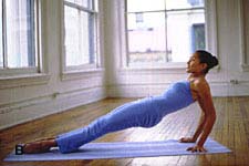 B、弯曲肘部,降低身体2英寸,保持小腿伸直,绷紧脚尖,收紧腹部,每组做15次。如果想简单些,就把双脚平放在垫子上,弯曲膝盖。 潇雪推荐:运动女人味 舞出柔韧曲线