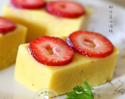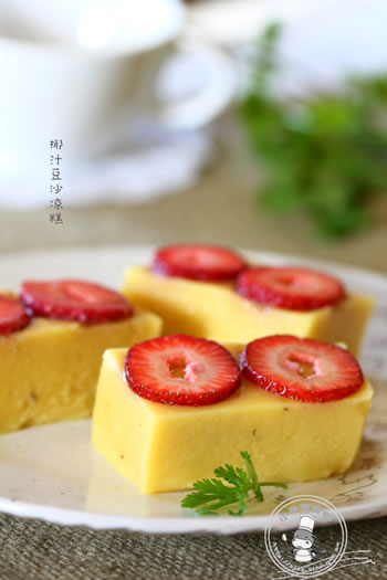 去皮绿豆、椰浆、吉利丁粉(Gelatin)、桂花蜜、草莓。