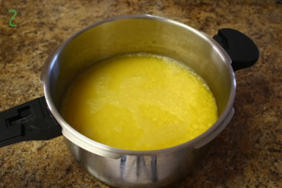 2、将泡好的去皮绿豆和水放入高压锅,水的量漫过绿豆1.5-2cm;