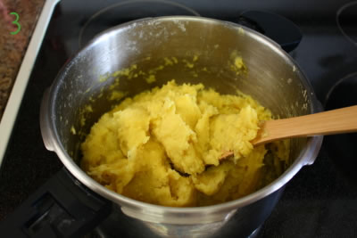3、小火高压8-10分钟,关火焖15分钟,打开后用勺子捣拌均匀;