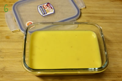6、将搅拌均匀的材料用滤网过滤到耐热性能好、密封性强的耐热玻璃容器里,晾凉后放入冰箱冷藏数小时;