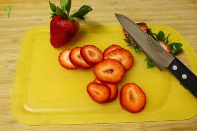 6、最后铺入草莓或其他水果片的步骤亦可以省略。
