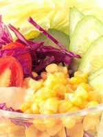 在快餐厅里,一定要用蔬菜沙拉来代替炸薯条。粟米棒中所含脂肪50%以上是亚油酸,还含有谷固醇、卵磷脂及丰富的维生素,纤维素比大米、面粉要高6~8倍。土豆中也含有丰富蛋白质及碳水化合物。别喝碳酸饮料,选择无糖果汁,这样做的好处是显而易见的。