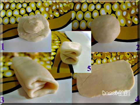 A面团:中筋面粉120G,盐1.2G,猪油42G,水54ML