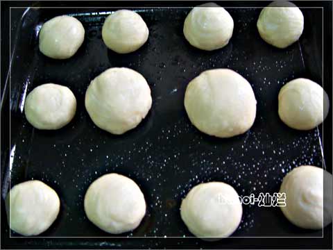 把馅包好。放到烤盘上,然后稍微撒一点点水在表面。
