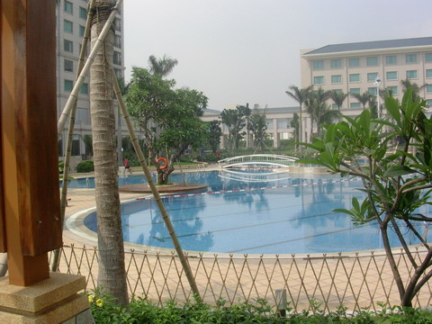 广东的MM可能觉得很一般了。因为广东那边很多镇上都有很高配置的酒店。环境都会跟这里差不多。可是这种配置的酒店在北京和上海都好难找到。北京的五洲,北京饭店,贵宾楼,都没有这么好的景色。第一副图里,后面是条河。。。呵呵。在北京的市里或者郊区可都是找不到的好地方。就算有,也是380这个价格住不了的。